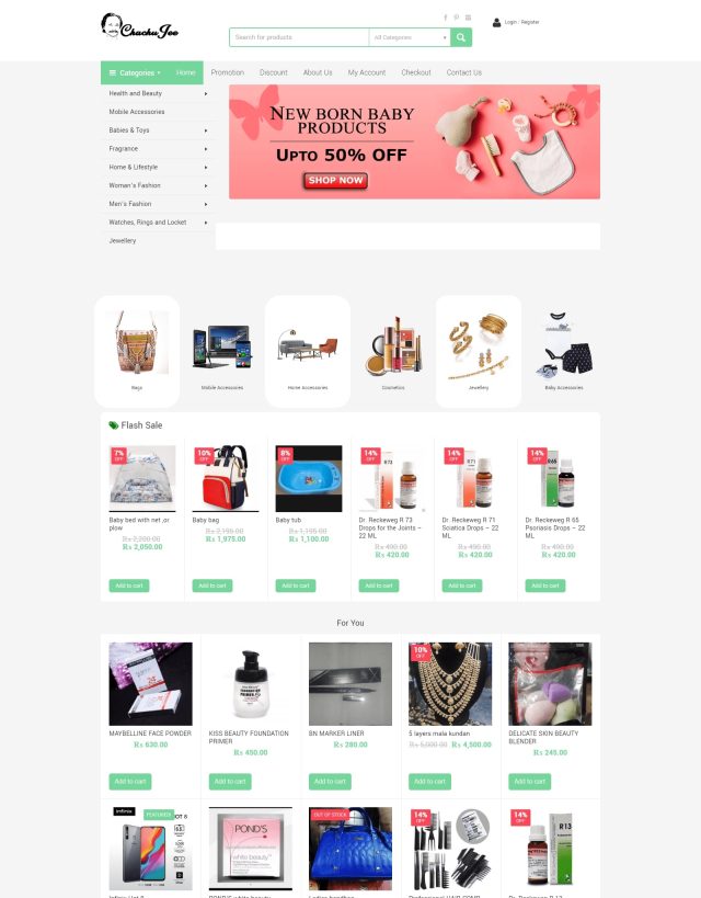 Chachujee is a multi-vendor e-commerce website in  Pakistan. It sells all types of products. Website URL Chachujee.com